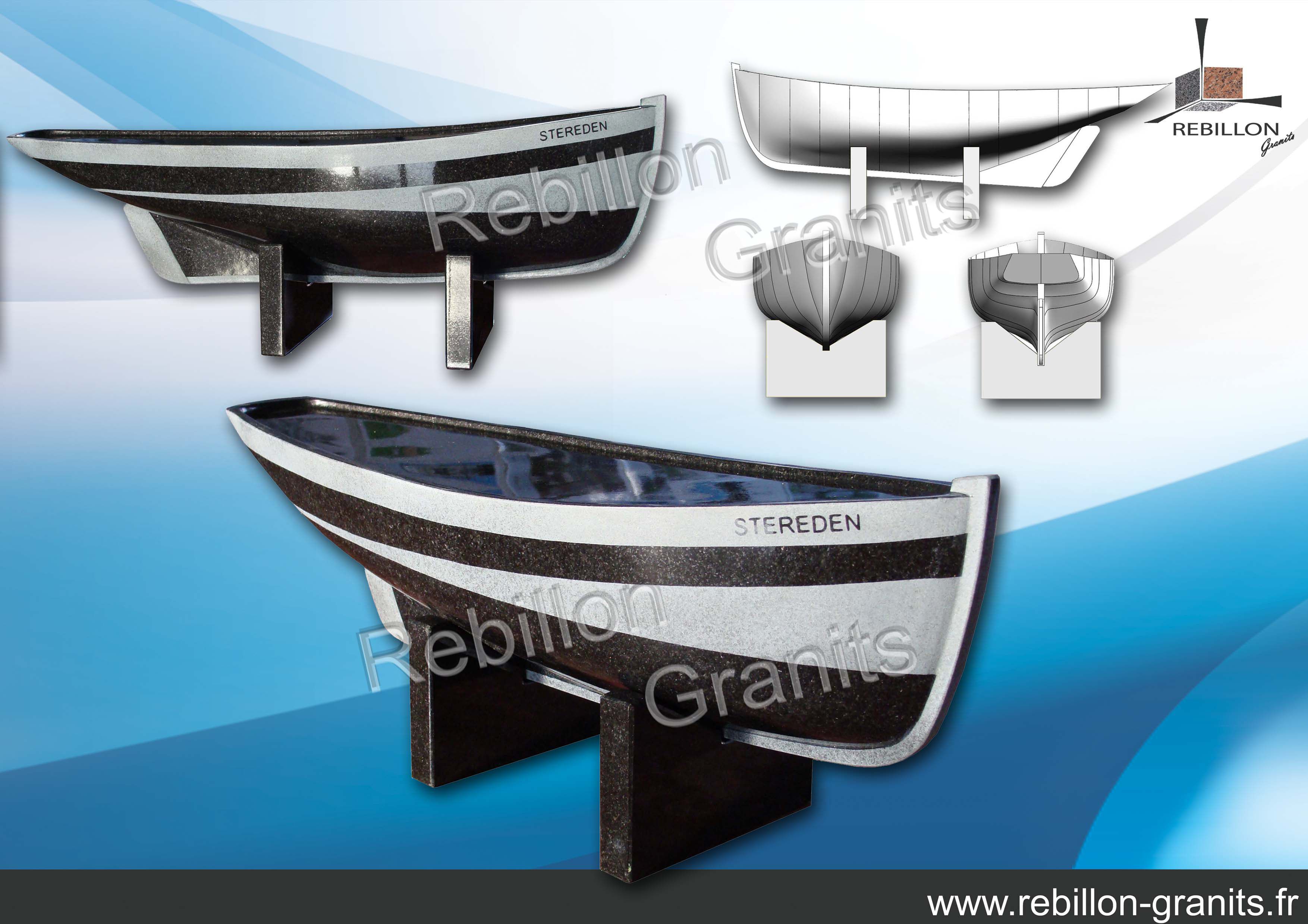 Sculpture bateau en granit