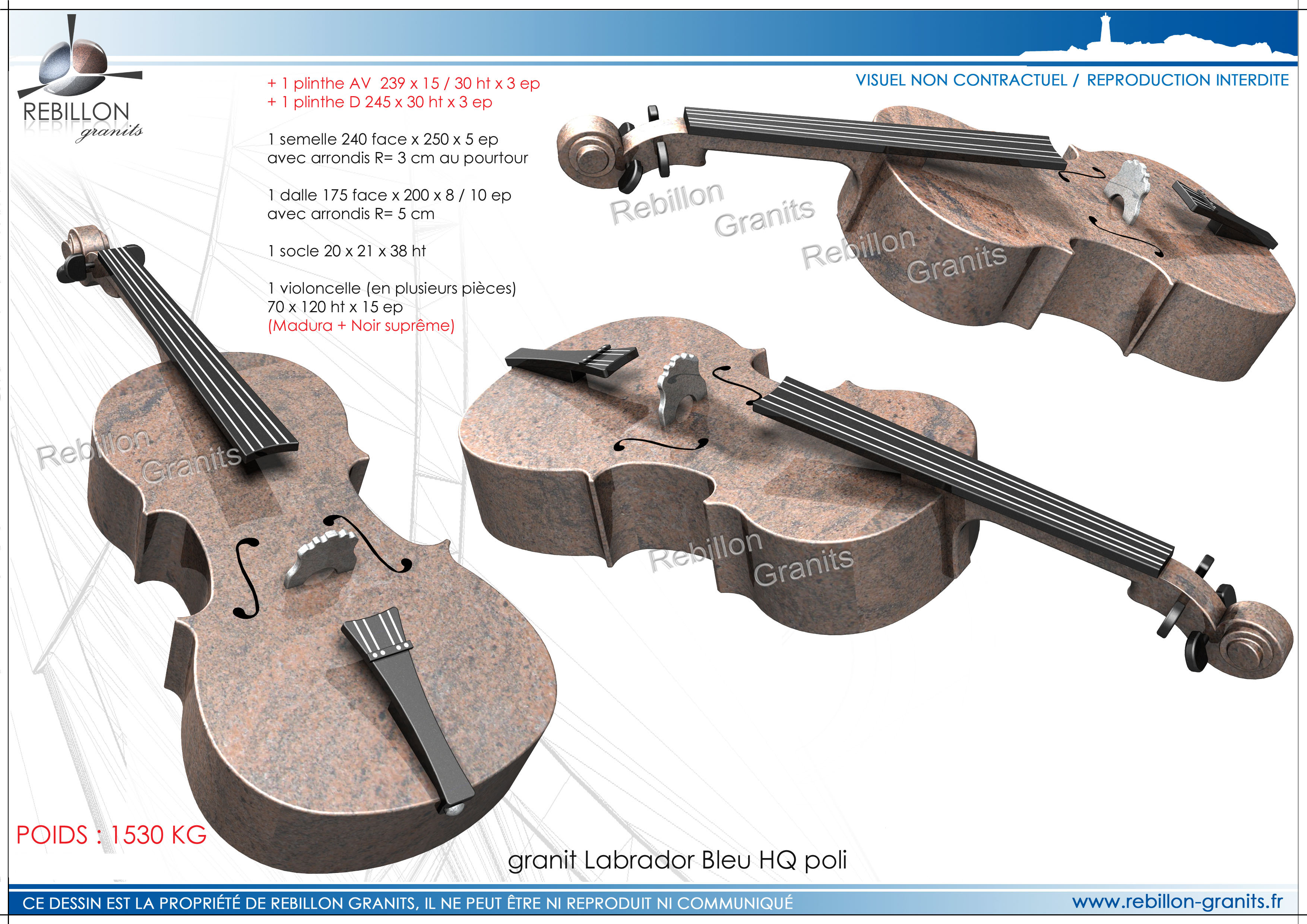 Sculpture violon en granit